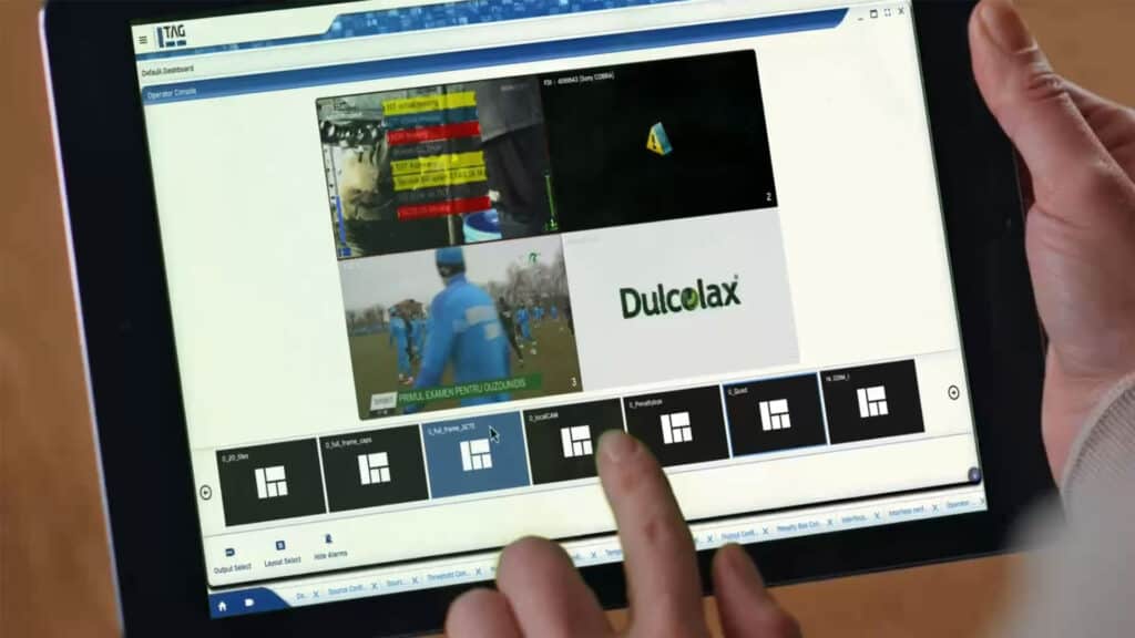 Operator Console is TAG’s intuitive control panel designed for day-to-day operations. Instead of requiring access to system configuration, operators can directly interact with a visual mirror of the live mosaic via a touch-supporting interface. This allows them to switch predefined layouts, choose feeds per tile, listen to source audio, control appearance of alarms and trigger display changes instantly- without accessing the underlying configuration.