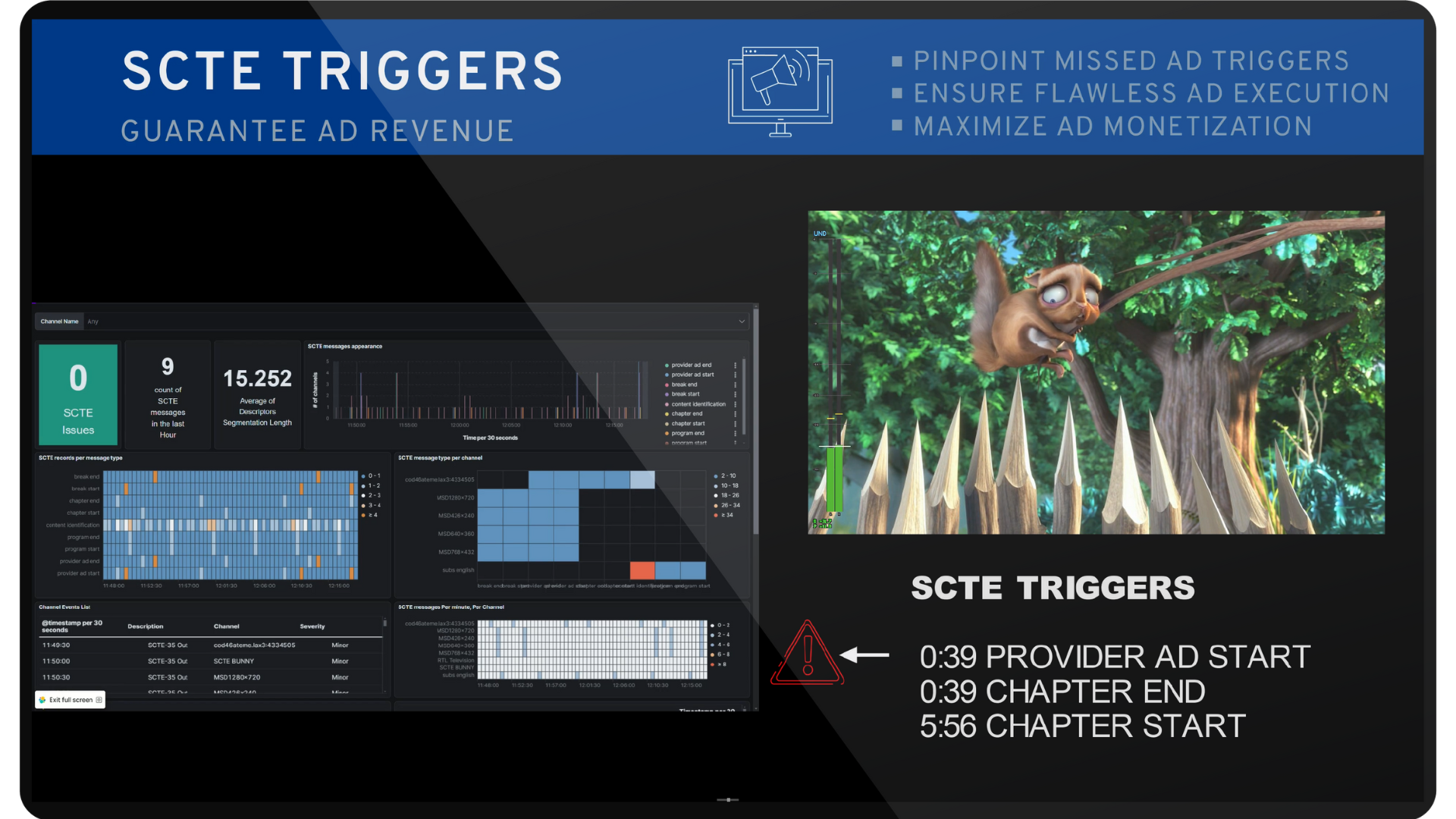 Proactively identify and address potential problems with comprehensive detection of over 500 event types across all stream layers and major media formats. Customize alert thresholds to receive timely, actionable notifications that help you minimize downtime and ensure a seamless viewer experience.